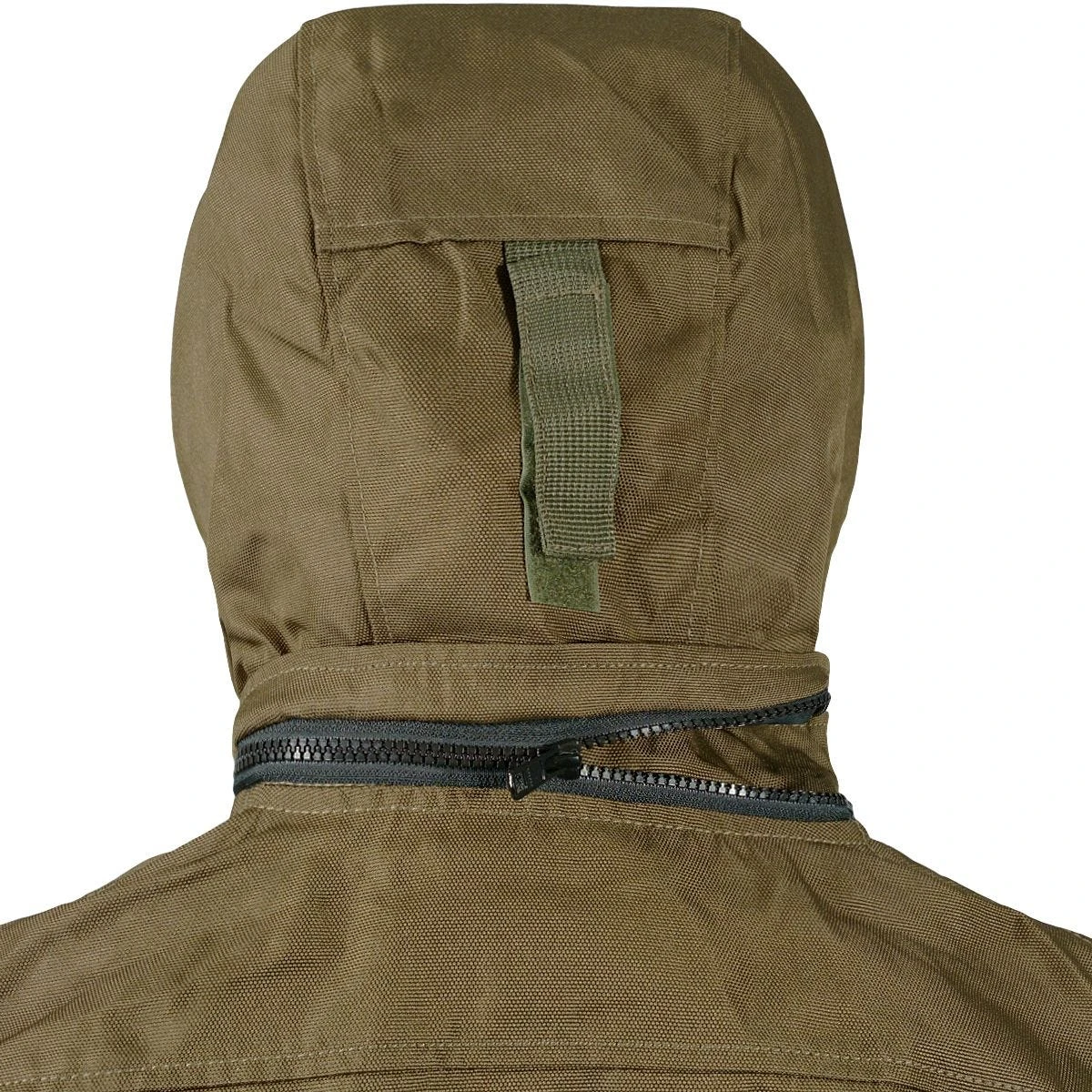 - Detachable and adjustable hood with a hook-and-loop fastener,
