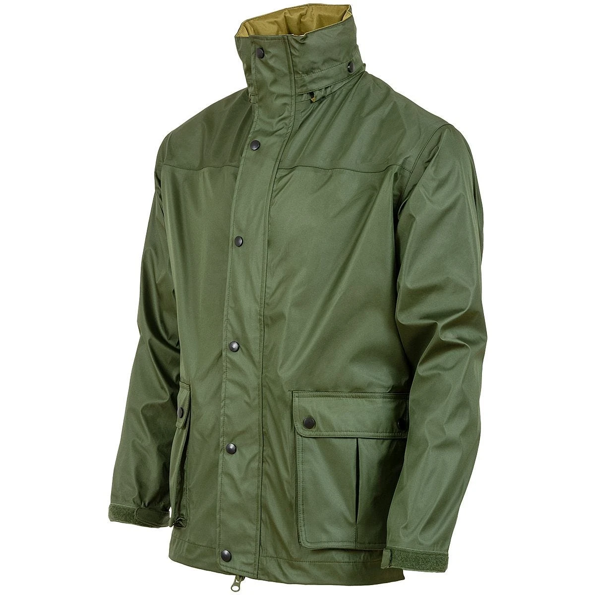side accessible hand pockets. This robust waterproof jacket goes as well