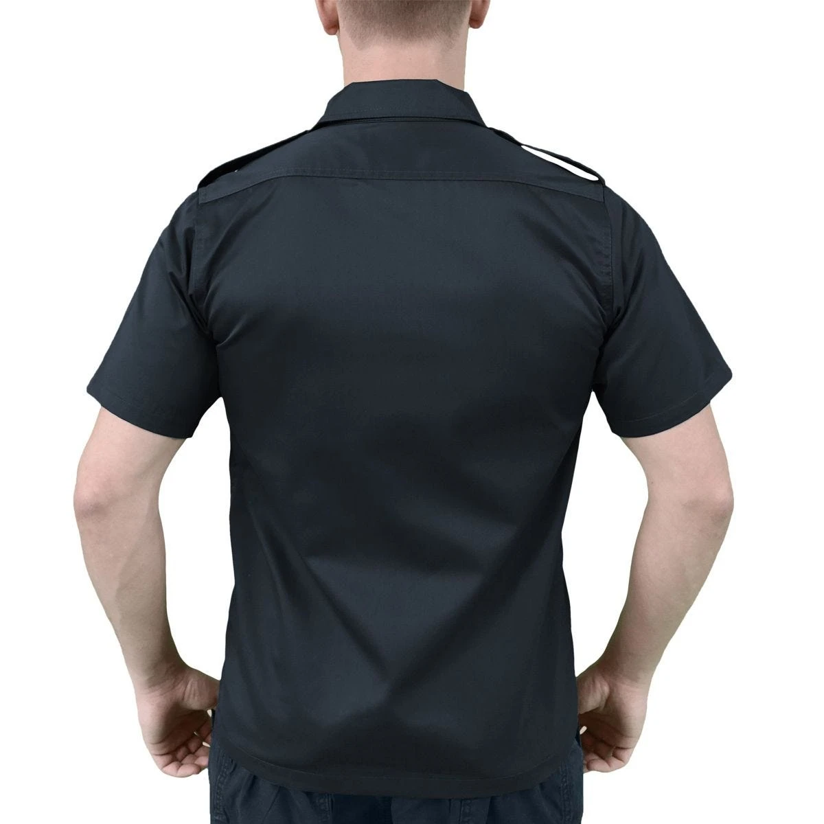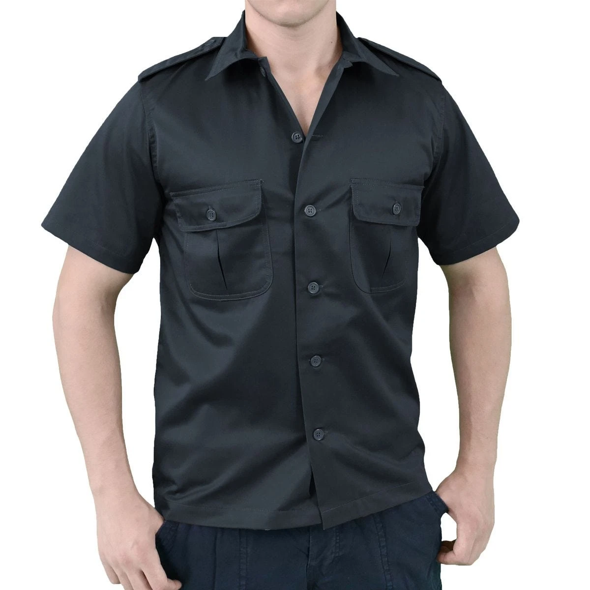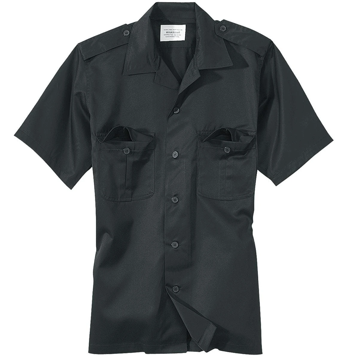 fastener, two chest flapped pockets and shoulder epaulets.