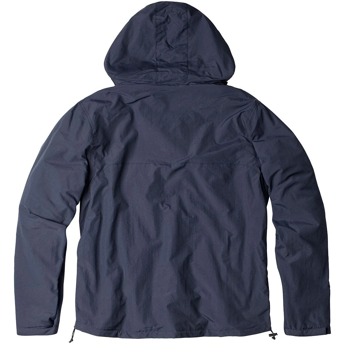 breathable, windproof and water repellent 100% nylon. It features a hood